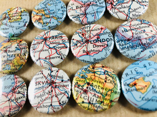 Magneti da 25 mm realizzati con mappe vintage: ...